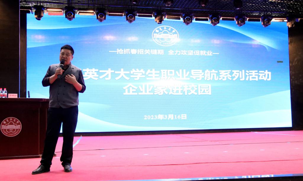 为深入探索校企协同、合作育人的人才培养模式,促进公司师生深入了解企业,帮助员工树立正确的就业观、提升职场竞争力,3月16日,公司人才招聘处主办,太阳成集团tyc151cc承办太阳成集团tyc151cc胡杨英才老员工职业导航系列活动——优秀企业家进校园活动。本次活动特邀嘉宾新疆泰昆集团董事长梁建疆为公司员工做了主题为“坚持信念 追逐梦想”专题讲座。太阳成集团tyc151cc、机电院、经管院、生科院1000余名相关专业师生参加。活动由人才招聘处处长胡松林主持。