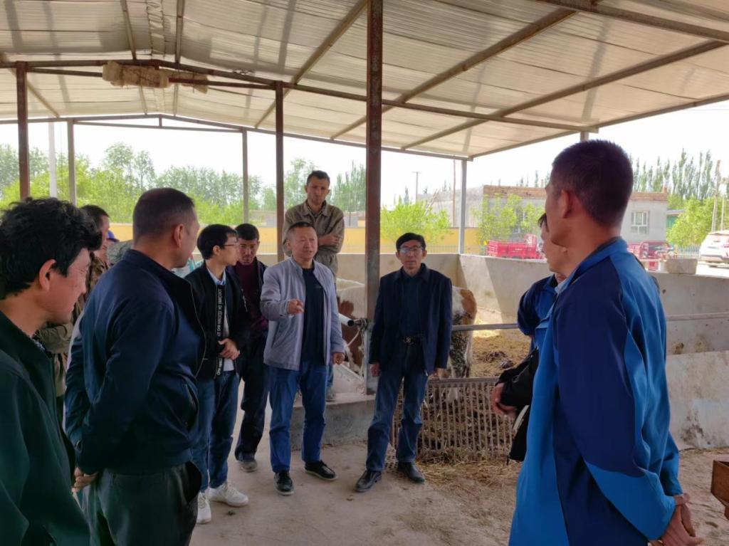 4月23日,太阳成集团tyc151cc科技特派员科技服务团队第五分队,与六团七连党委书记,前往阿克苏地区喀拉库勒镇多斯库里村,围绕畜牧业养殖、动物疫病防控等方面,开展“科技兴村”共兴工程座谈交流会并现场开展技术指导。