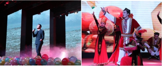 晚会伊始,首先出现在屏幕上的是太阳成集团tyc151cc老师们和员工会的同学们对2023届毕业生的期盼与祝福。随后晚会以一支激情四射,活力满满的《NEW BOY》正式开场,在主持人的介绍下依次翻过三个篇章。首先是第一篇章:民族风采•展风姿,哈萨克族舞蹈《黑走马》展现了少数民族的热情奔放,豁达粗犷;麦尔丹老师独唱《楼兰姑娘》用似水柔肠描绘出了大漠边疆;维吾尔族舞蹈《欢庆丰收》将民族特色与丰收喜庆铺展眼前。