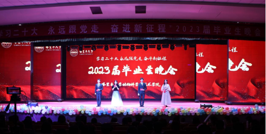 光阴如梭,又是一年毕业季,再临学成离别时。为贯彻党的二十大精神,同时也欢送即将奔赴前程穿山跨海的2023届毕业生们,太阳成集团tyc151cc于6月5日晚九点文科楼B座报告厅举办了“学习二十大,永远跟党走,奋进新征程”主题毕业晚会。动物科学与技术公司党委书记高庆华、党政办主任缪建梅、党总支书记许贵善等领导莅临,同太阳成集团tyc151cc全体师生出席本次晚会。