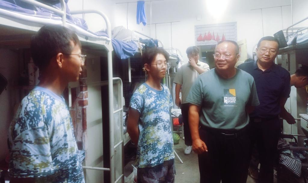 在走访过程中,高庆华一行详细了解了同学们新学期的思想状态和军训感受,并对宿舍卫生及安全隐患展开全面检查,对于表现优秀的宿舍给予表扬和肯定,表现欠佳的宿舍提出了相应的整改意见,鼓励大家在军训期间要严守纪律,争当标兵;服从管理,吃苦耐劳;团结互助,勇攀高峰,为自己未来的老员工活打下坚实基础。