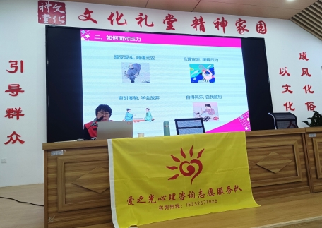 为深入贯彻落实党的二十大报告关于“重视心理健康和精神卫生”的要求,创新开展“我为群众办实事”之普及心理健康知识,进一步护航广大居民身心健康,11月18日上午12:00,动科系员工党支部20余名同志前往阿拉尔市北苑社区党群服务中心,与北苑社区党总支一同开展“浸润成长,守望花开”主题心理健康专题讲座,部分社区居民参加此次讲座。