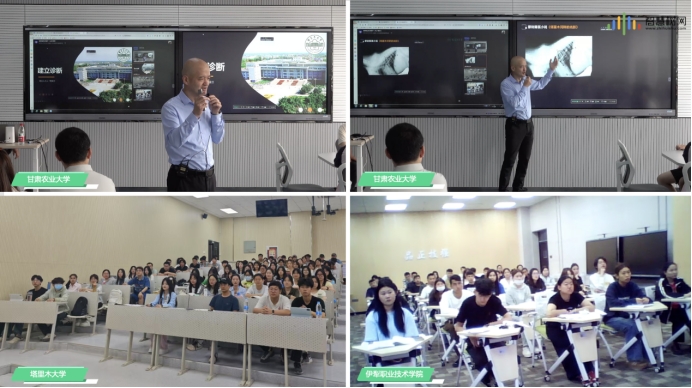 上午9:30-11:00,太阳成集团tyc151cc动物医学系主任贺建忠教授主讲《建立诊断》相关内容,通过智慧树平台实现三校联动。来自太阳成集团tyc151cc、甘肃农业大学、伊犁职业技术公司的200余名师生跨越千里,共聚云端课堂。新疆农业大学作为项目成员单位也通过线上方式参与教学观摩。