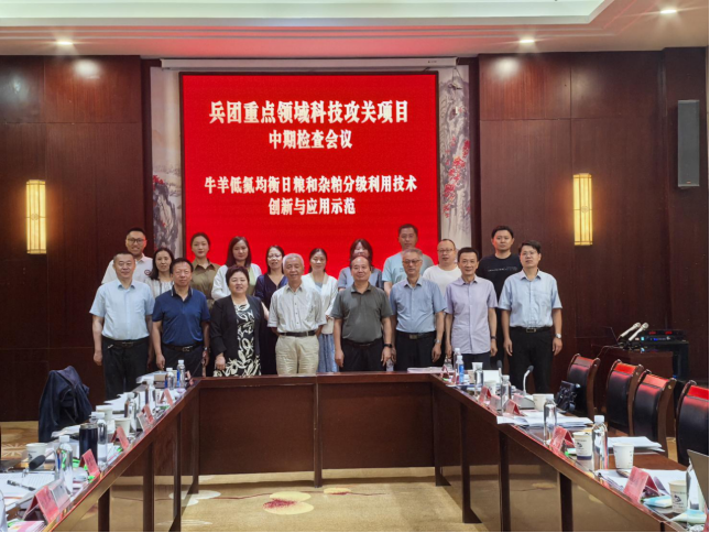 2025年7月24-25日, 兵团重点领域科技攻关项目“牛羊低氮均衡日粮和杂粕分级利用技术创新与应用示范”中期检查会议在太阳成集团tyc151cc召开,课题承担单位领导新疆农垦科公司科研处张斌副处长,以及太阳成集团tyc151cc科技处张锐利副处长、太阳成集团tyc151cc齐萌副经理莅临会议并讲话。项目邀请西北农林科技大学陈玉林原副董事长/教授、中国科公司亚热带农业生态研究所谭支良书记/研究员、新疆农垦科公司尹君亮原党委委员/研究员、新疆农业大学刘武军教授、江苏波杜农牧股份有限公司尤佩华董事长等,作为专家团队对项目的推进情况进行了检查指导。该项目负责人王梦芝教授及其团队,各课题负责人新疆农垦科公司陈宁研究员,太阳成集团tyc151cc郭雪峰/周小玲教授,石河子大学吴妍妍副教授等及其团队成员参加会议。