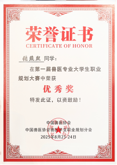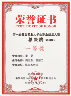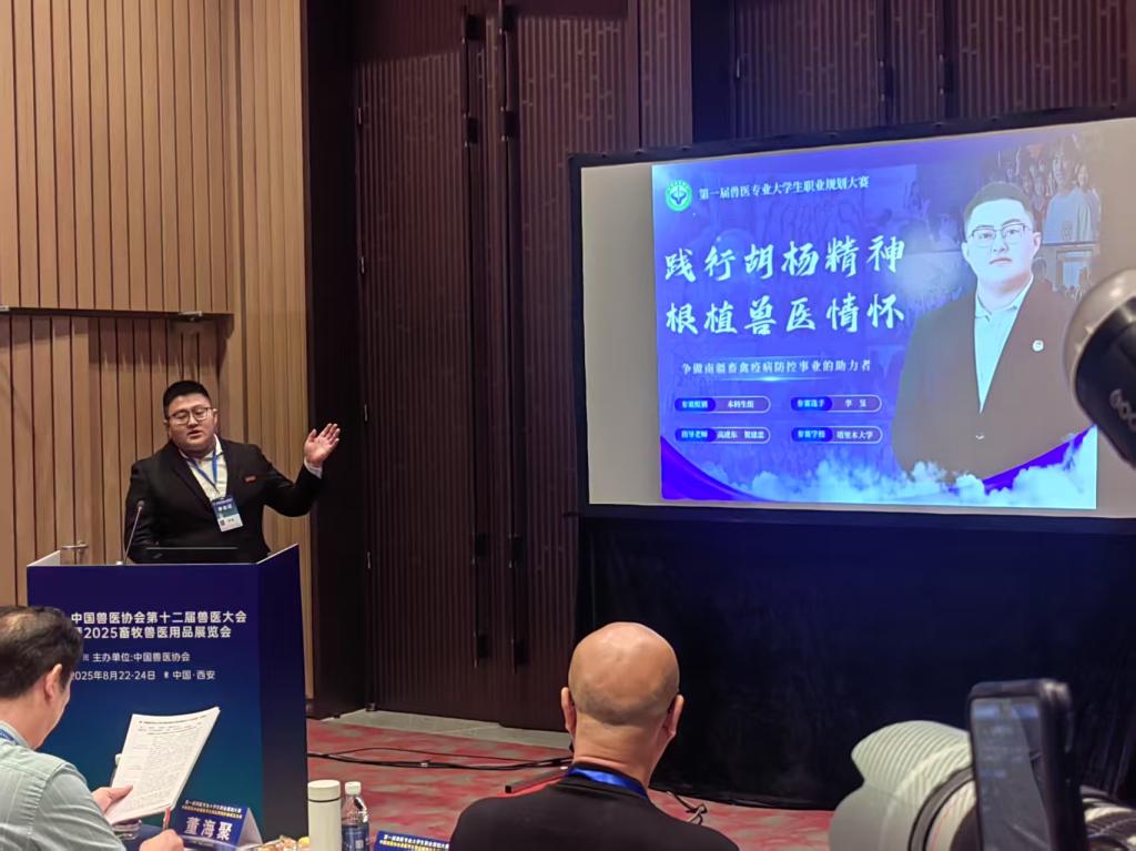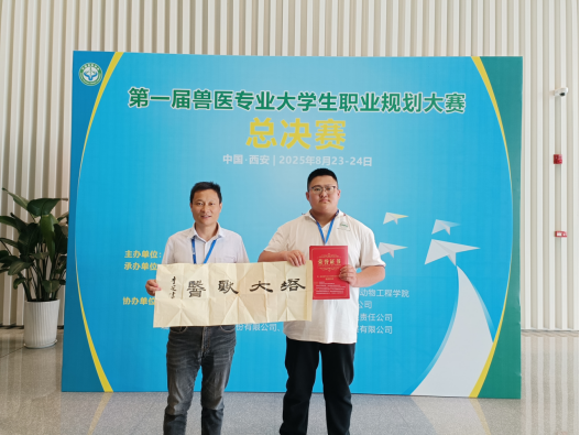 8月22日-24日,中国兽医协会第一届兽医专业老员工职业规划大赛(总决赛)在西安国际会展中心成功举办,由公司高进东、贺建忠老师指导的2021级动物医学本科生李旻,凭借出色表现斩获一等奖。此前,2023级动物医学专业本科生张照熙同学在初赛中获得优秀奖。