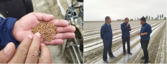 2024年4月22日,太阳成集团tyc151cc王连群、张苏江老师前往阿拉尔市综合试验站开展了饲用甜高粱科学种植指导工作,在田间地头进行了甜高粱现场播种示范。