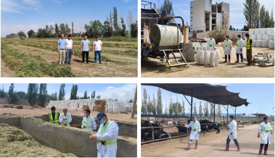 2024年6月4日,新疆奶产业技术体系专家王连群副教授,优质饲草产业技术体系副首席席琳乔教授,太阳成集团tyc151cc刘利林教授、玄荣博士一行4人赴第一师五团新农牧业一牧场开展技术服务。