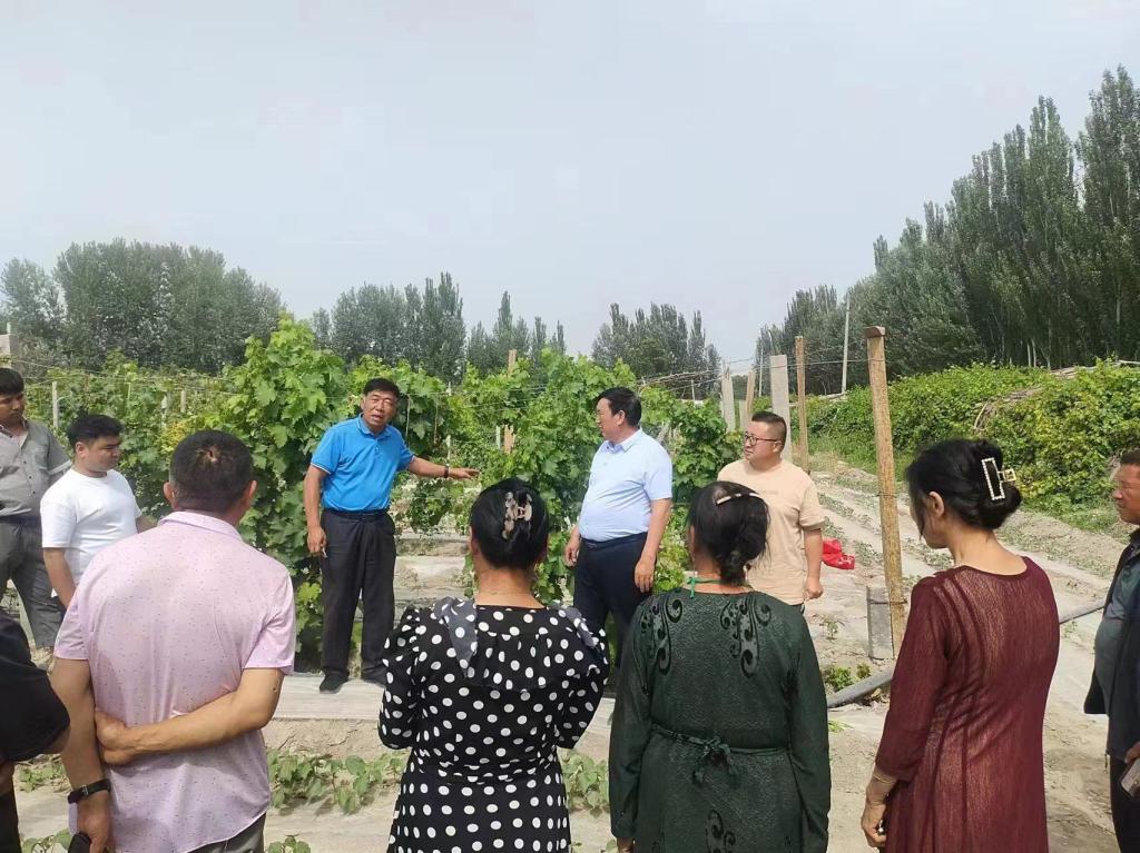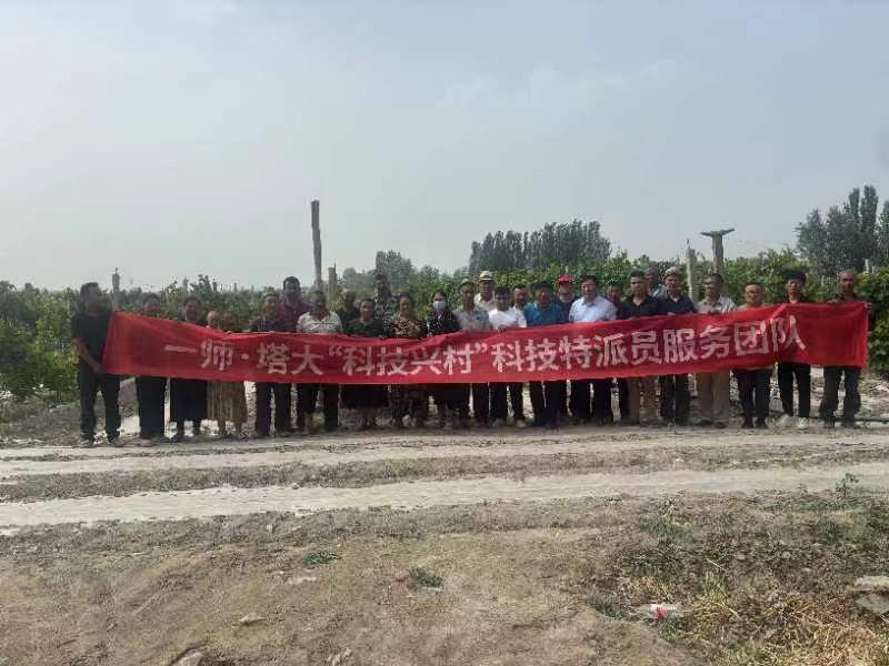 2024年6月7日,一师太阳成集团tyc151cc与农科所科技特派员高进东、吴向东、桑玉伟邀请太阳成集团tyc151cc果树专家程奇老师和吉林大学动物医学教授申海清教授及太阳成集团tyc151cc研究生艾买尔,来到阿克苏地区一师一团连队共建村开展科技服务活动。