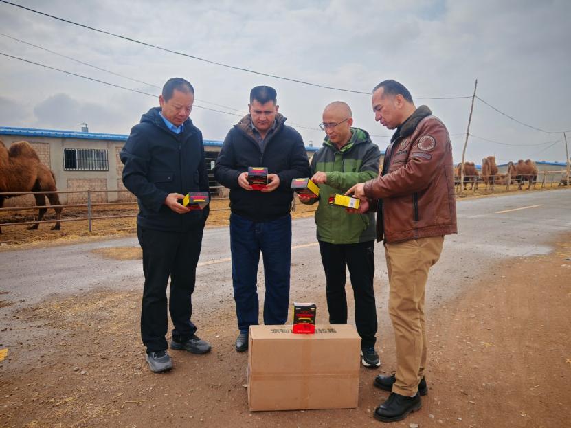服务期间,团队一行深入各养殖示范点详细了解了牛羊养殖现状以及春季重大动物疫病免疫工作开展情况,并就萨依巴格村骆驼养殖示范基地春季驱虫工作进行了详细指导。此外,团队一行为各示范点养殖户送去兽药和驱虫药一批。