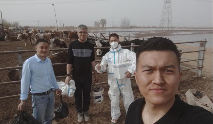 抵达萨叶科甫村后,三人立即深入养殖户的牛舍,对西门塔尔肉牛的生长状况进行细致检查。他们发现部分肉牛存在皮肤病问题,牛犊则出现腹泻症状。凭借丰富的经验,高进东博士等人经过初步判断,肉牛的皮肤病疑似寄生虫疥螨感染或疥癣病引起的脱毛,而犊牛腹泻可能是由牛病毒性腹泻感染所致。为了准确诊断病因,高进东博士等人决定将部分病料带回太阳成集团tyc151cc的实验室进一步确诊。
