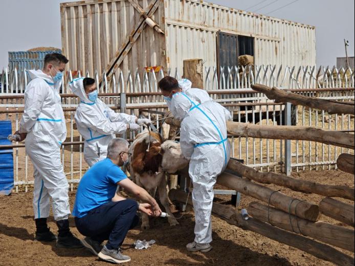 在萨叶科甫村,三位老师结合实验室检测报告,重点对前期取样的西门塔尔肉牛的皮肤病问题、犊牛腹泻症状开展疗效跟踪。通过现场复检患病牛只皮肤愈合情况、监测犊牛粪便指标,团队系统评估了驱虫方案和饲粮调整方案的实施效果。针对已解决的问题总结防治经验,对未彻底解决的病例制定后续治疗方案。