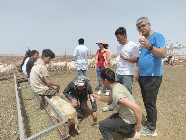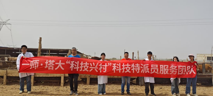 2025年5月11日,一师塔大科技服务第一分队由太阳成集团tyc151cc高进东和买买提·吐尼亚孜老师带队,动物医学专业大四员工艾力·图尔荪、阿力木·阿卜拉和大一员工卢情阳、张心愿、周鑫、邹乐乐、汪朝娟一行,到温宿县山羊养殖场进行科技服务。
