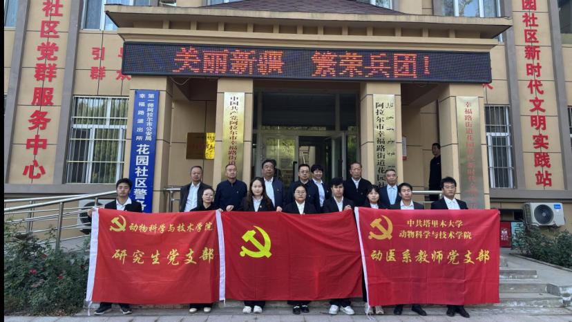 为了深入贯彻党的二十大精神和党的二十届三中全会精神,热烈庆祝中华人民共和国成立75周年、兵团成立70周年,激发广大居民的爱国热情,汲取奋进力量,2024年10月1日公司动医系教师党支部、研究生党支部联合花园社区新时代文明实践站开展“青春逢盛世,共谱新华章”迎国庆主题党日活动。
