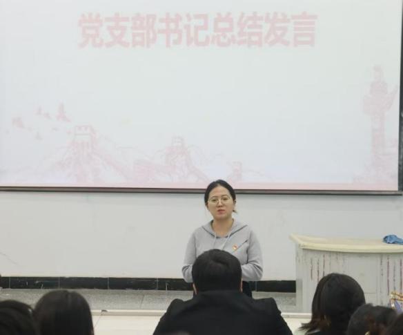 姚亚玲同志在总结中说到:“加入党组织是一次思想上的新的旅程,希望各位积极分子端正入党动机,加强对党相关理论知识的学习,加强党性修养,结合自身特长积极参与支部活动,充分发挥先锋模范作用。”王式琴同志带领全体党员重温入党誓词,面对党旗进行庄严宣誓。