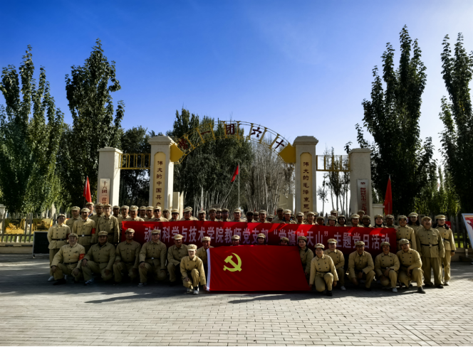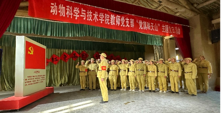 2024年10月23日,动物科学与技术公司党委副书记、经理井波带领教师党支部全体党员赴十六团一营开展“党旗映天山”主题党日活动,亲身体验军垦战士的一天。