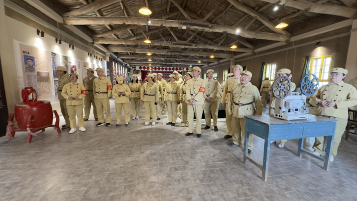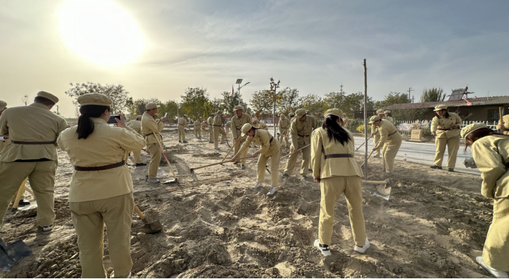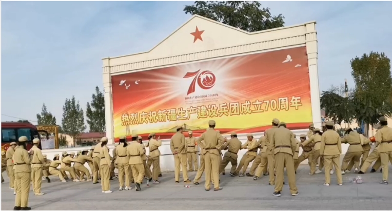 抵达十六团一营后,全体教师党员统一换上军垦战士着装,在值班营长和工作人员的带领下,精神饱满地投入各项活动。整齐划一的队列训练、精心策划的参观活动、铿锵有力的重温入党誓词、奋勇争先的劳动竞赛、热情洋溢的拔河比赛,每一项活动都是精心设计,全体教师党员都非常认真的投入其中,参与体验,切身的感受垦荒历史和垦荒精神。通过体验,教师党员们深刻感受到了一代代军垦战士不畏艰难、敢于拼搏的精神风貌,一代代兵团人为开发建设新疆做出重要贡献的感人故事。